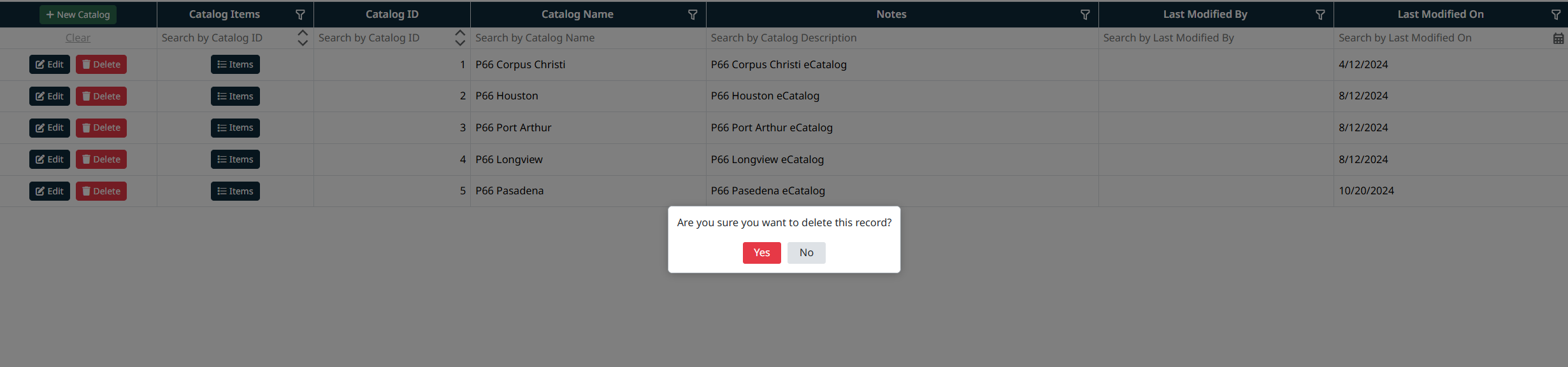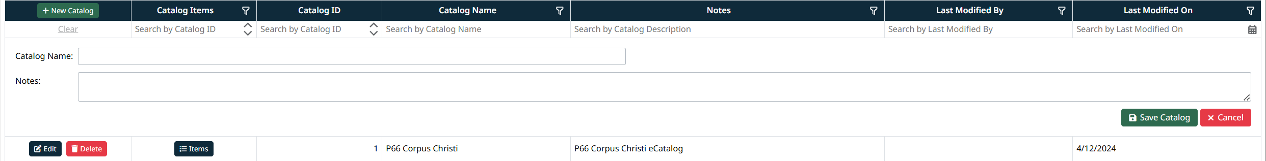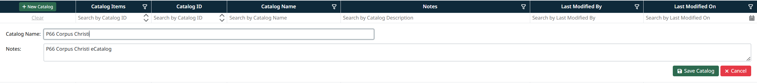 - Last Modified By – The user who last updated the catalog