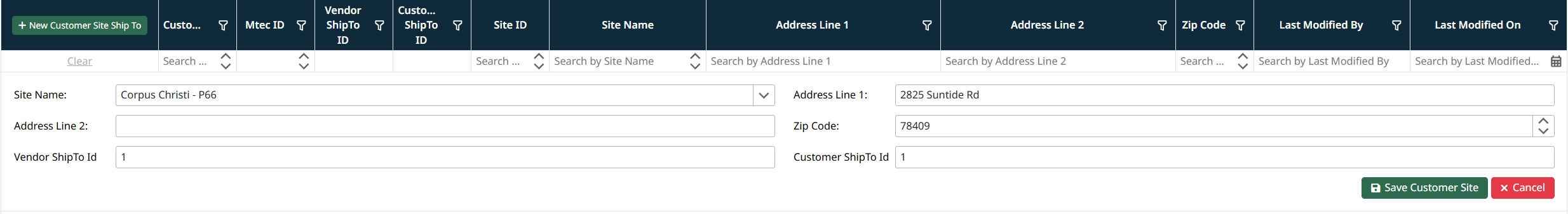 Editing a Customer Site Ship To