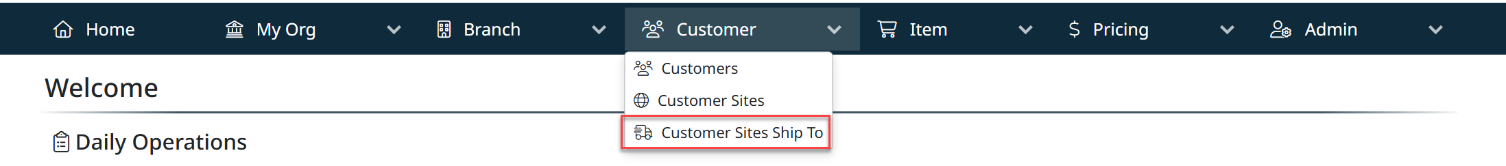 Customer Site Ship To