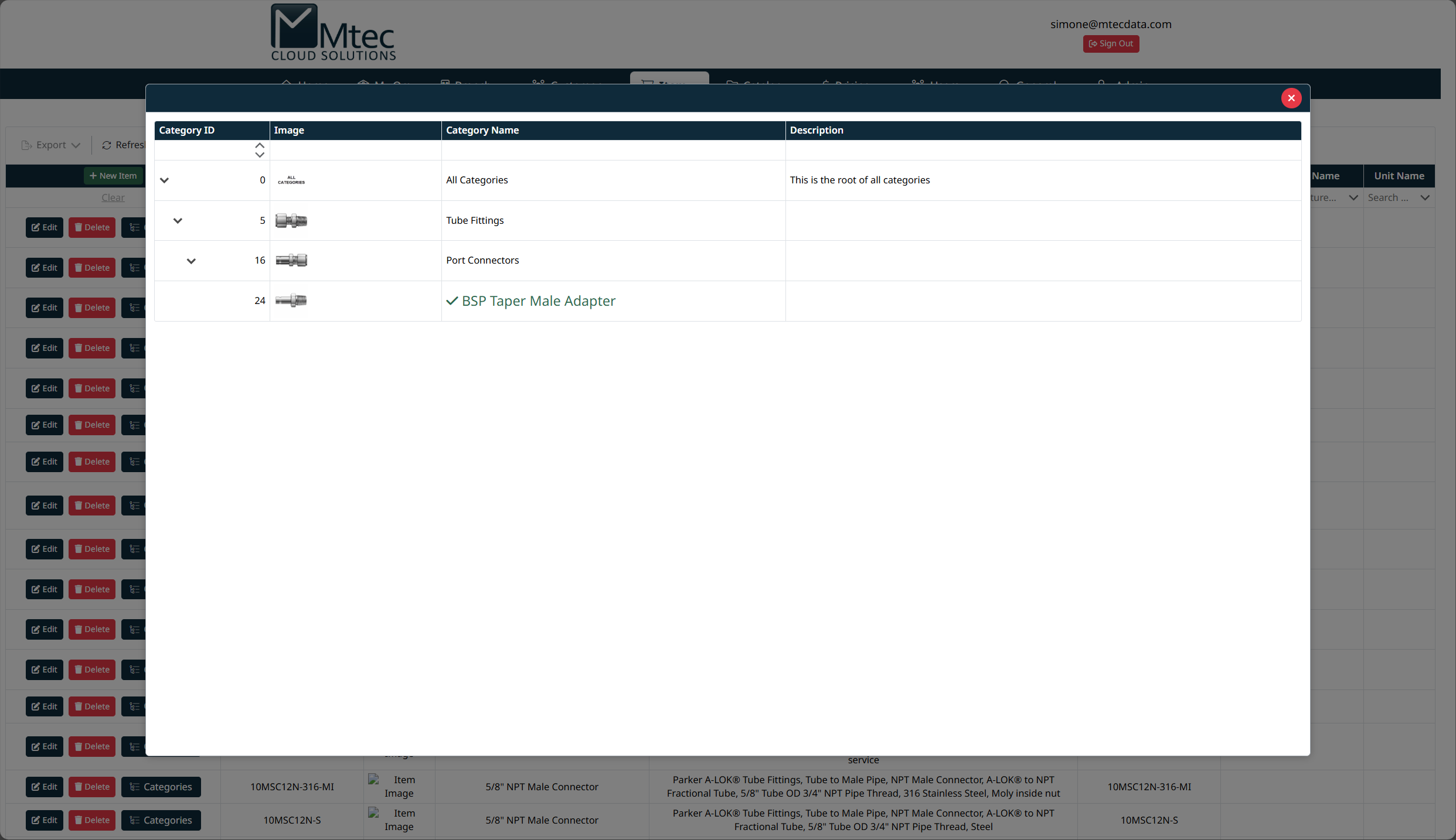 The Manage Items screen is used to create, maintain, and organize individual items within the system. Items represent the products that will appear in catalogs, search results, and customer-facing applications.