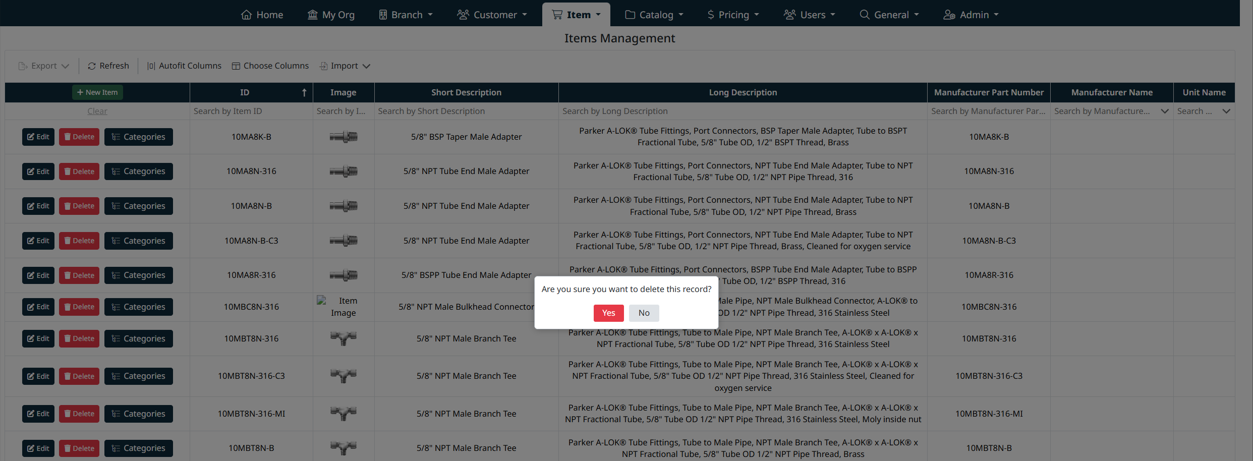Note: Deleting an item permanently removes it from the system. Ensure the item is not in active use before deleting.