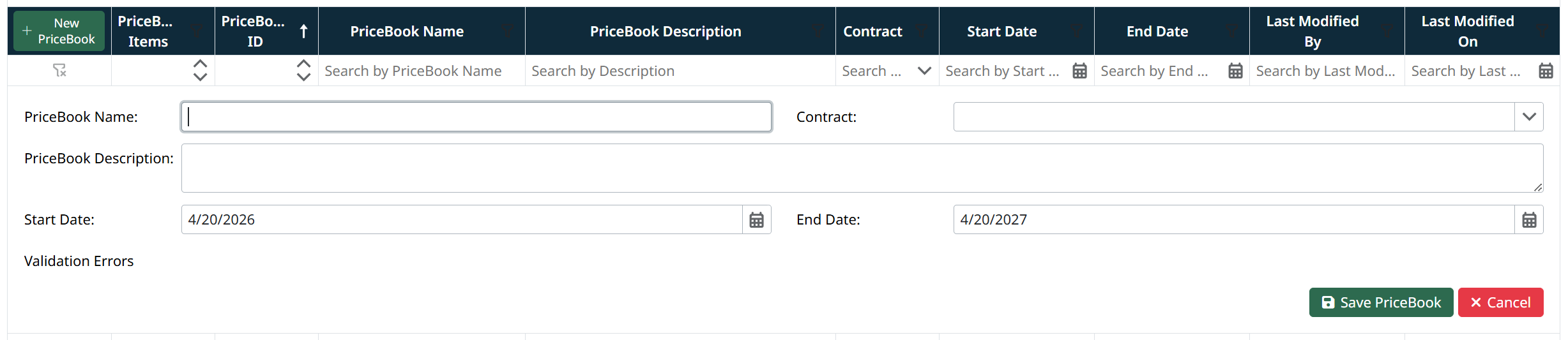 - Click Save PriceBook Item