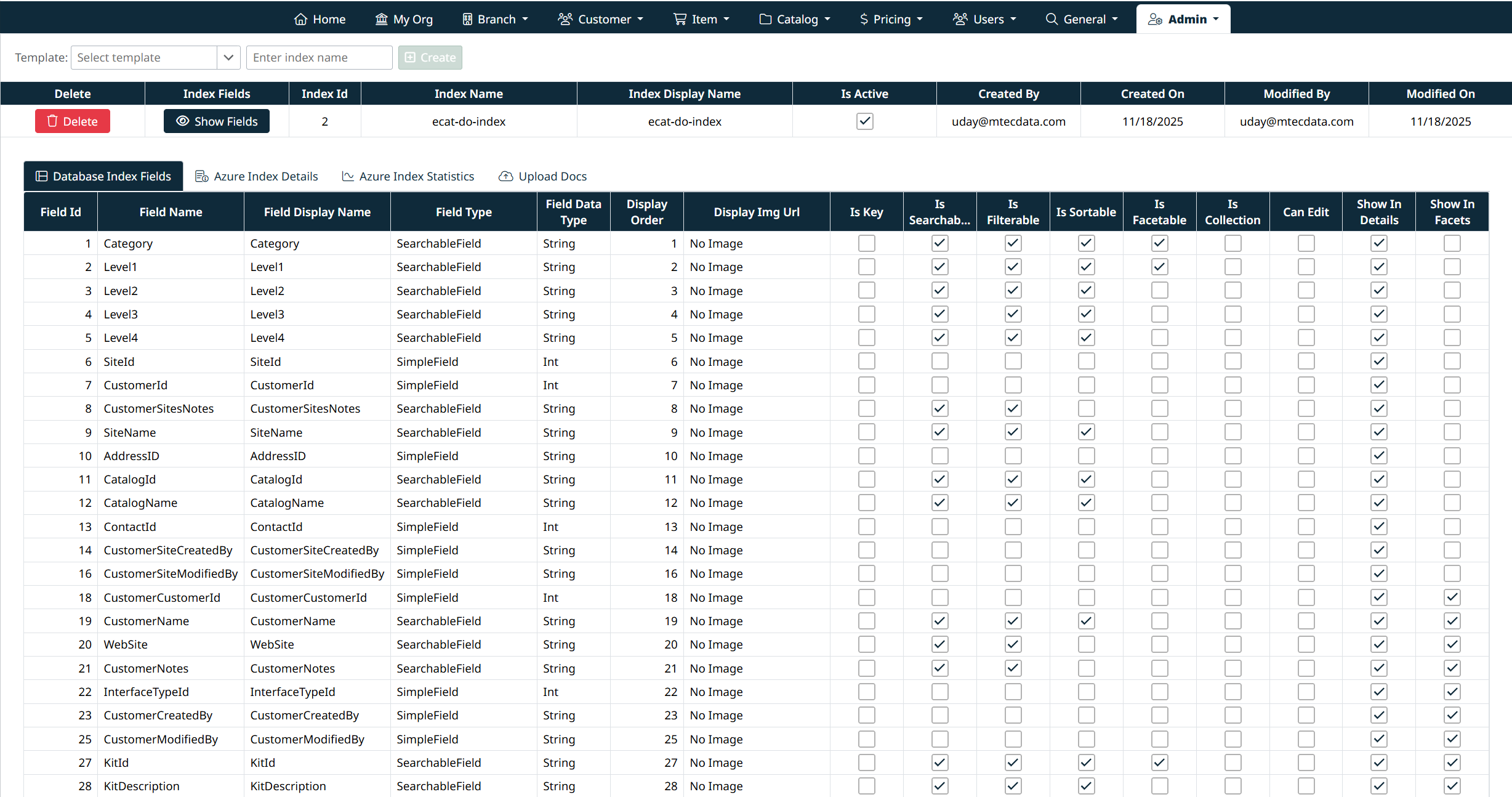 - Show Fields – View index field configuration