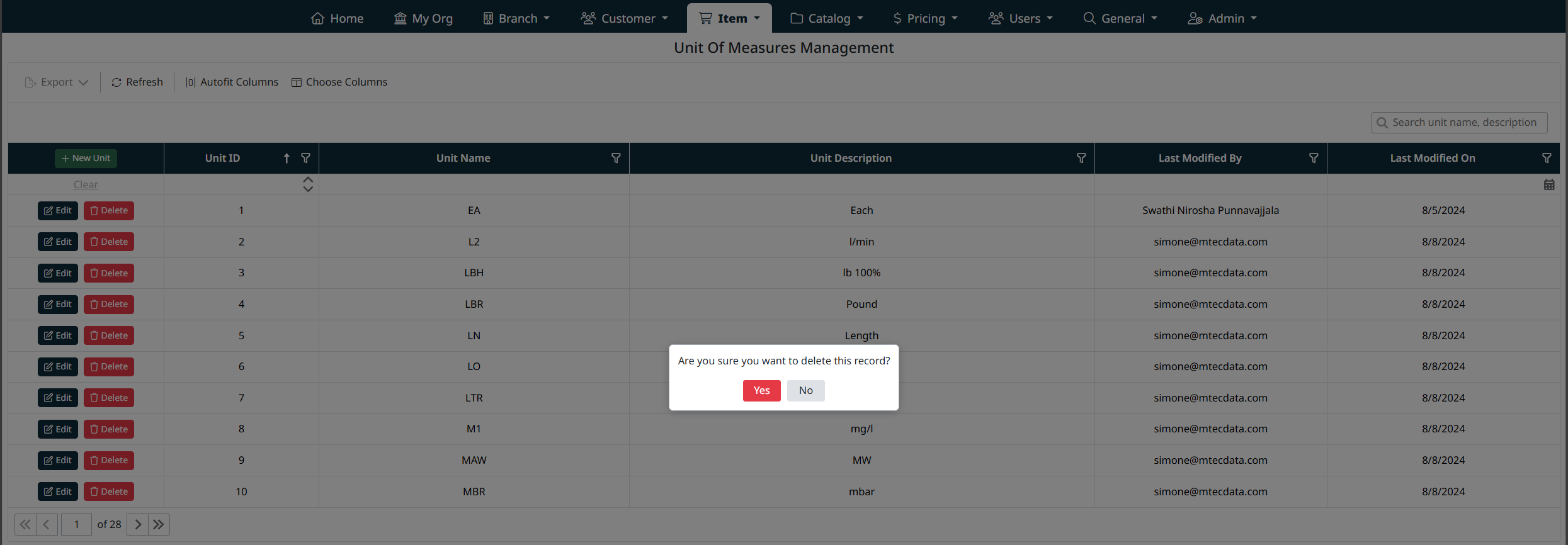 Note: Units of measure that are already assigned to items may be restricted from deletion to prevent data integrity issues.