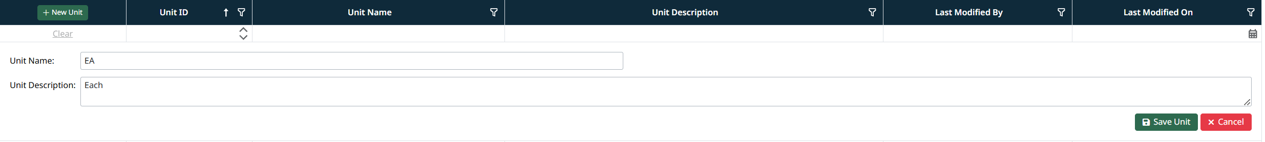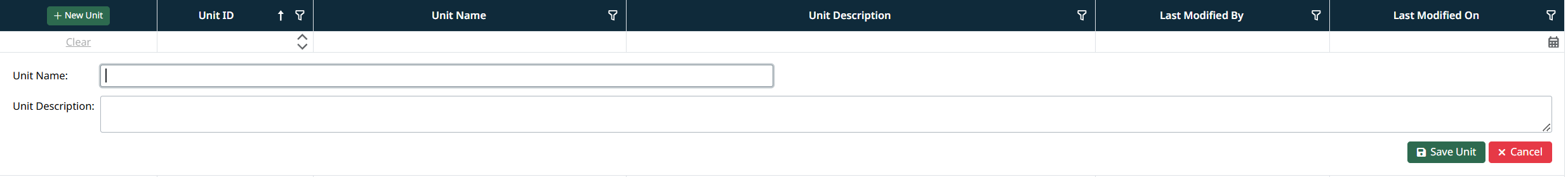 - Click + New Unit at the top of the grid.